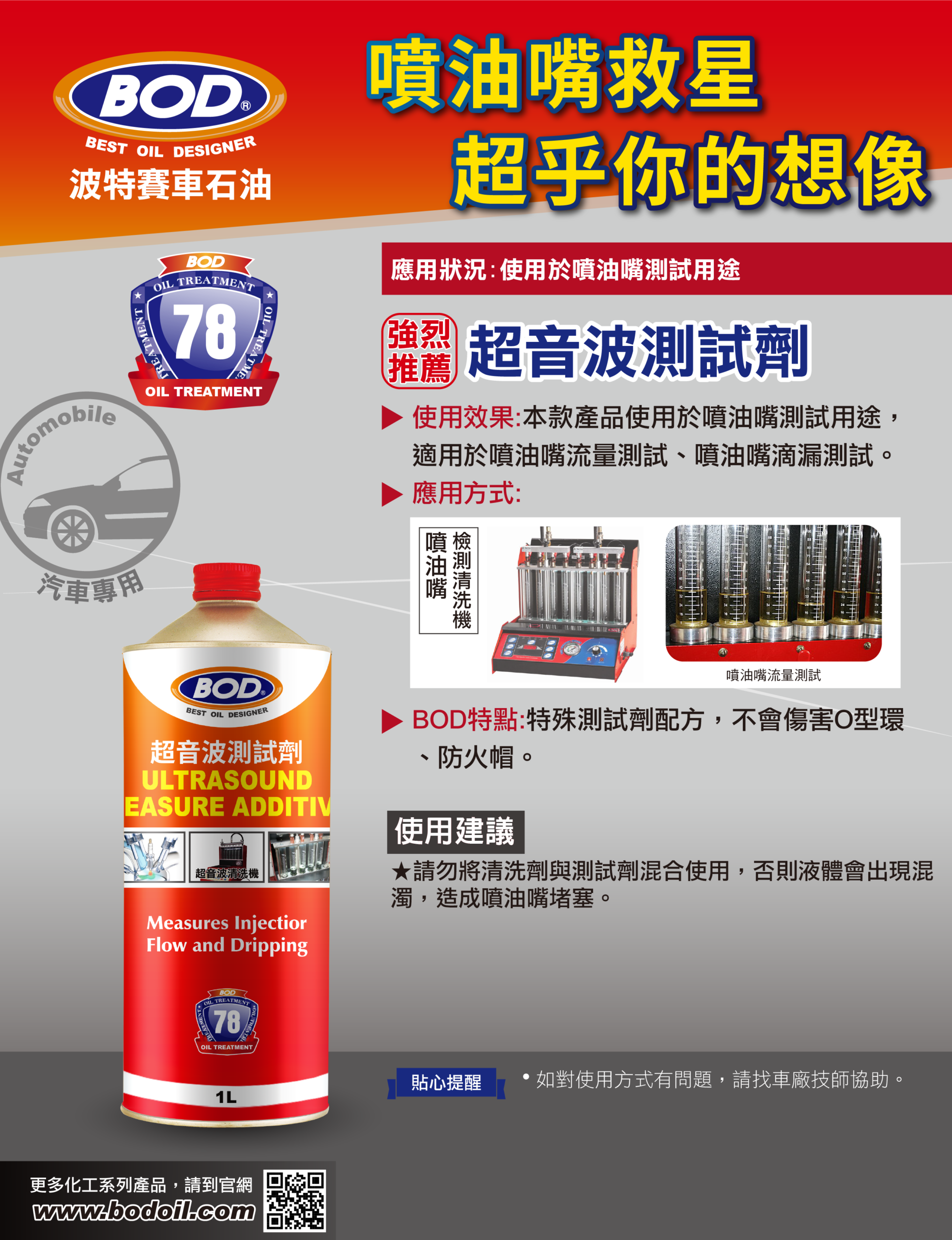 BOD 超音波測試劑 是專為「噴油嘴檢測台」設計的專用功能液。