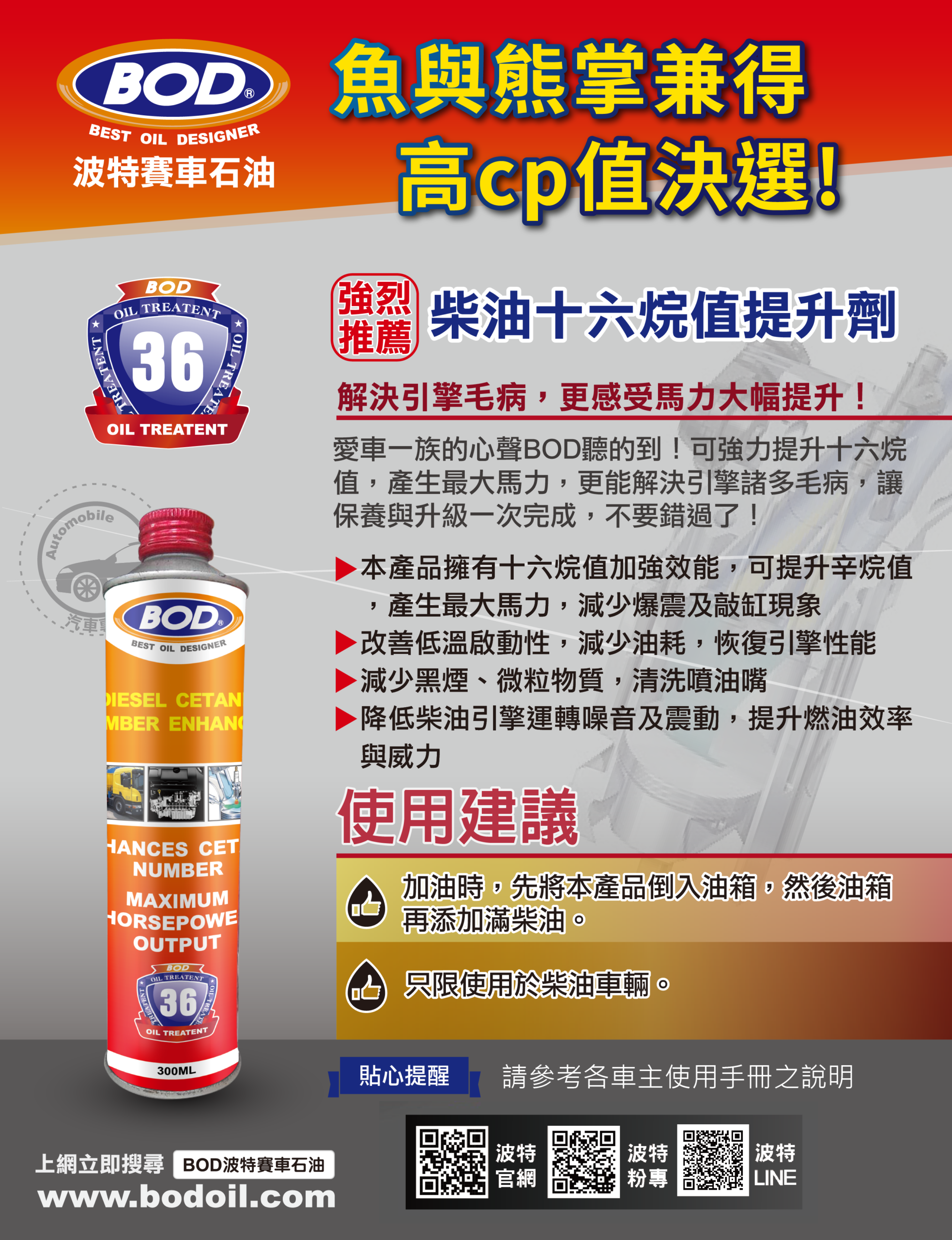 【BOD 波特】柴油十六烷值提升劑 (含除碳配方) 300ml