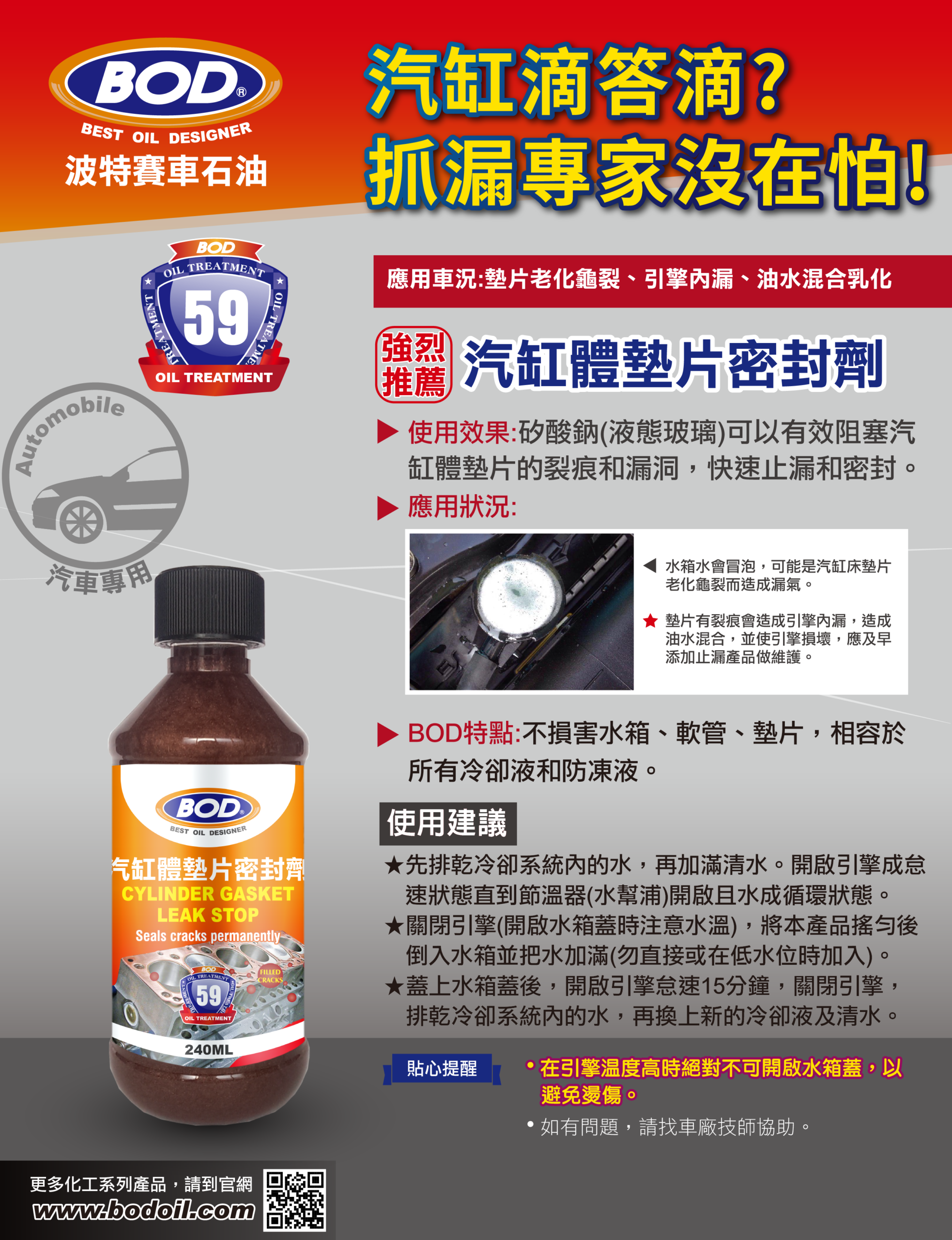 【BOD 波特】專業級汽缸體墊片密封劑 (240ml) 🛠️ 免拆卸修復神器:強力封堵冷卻系統滲漏,延長引擎壽…