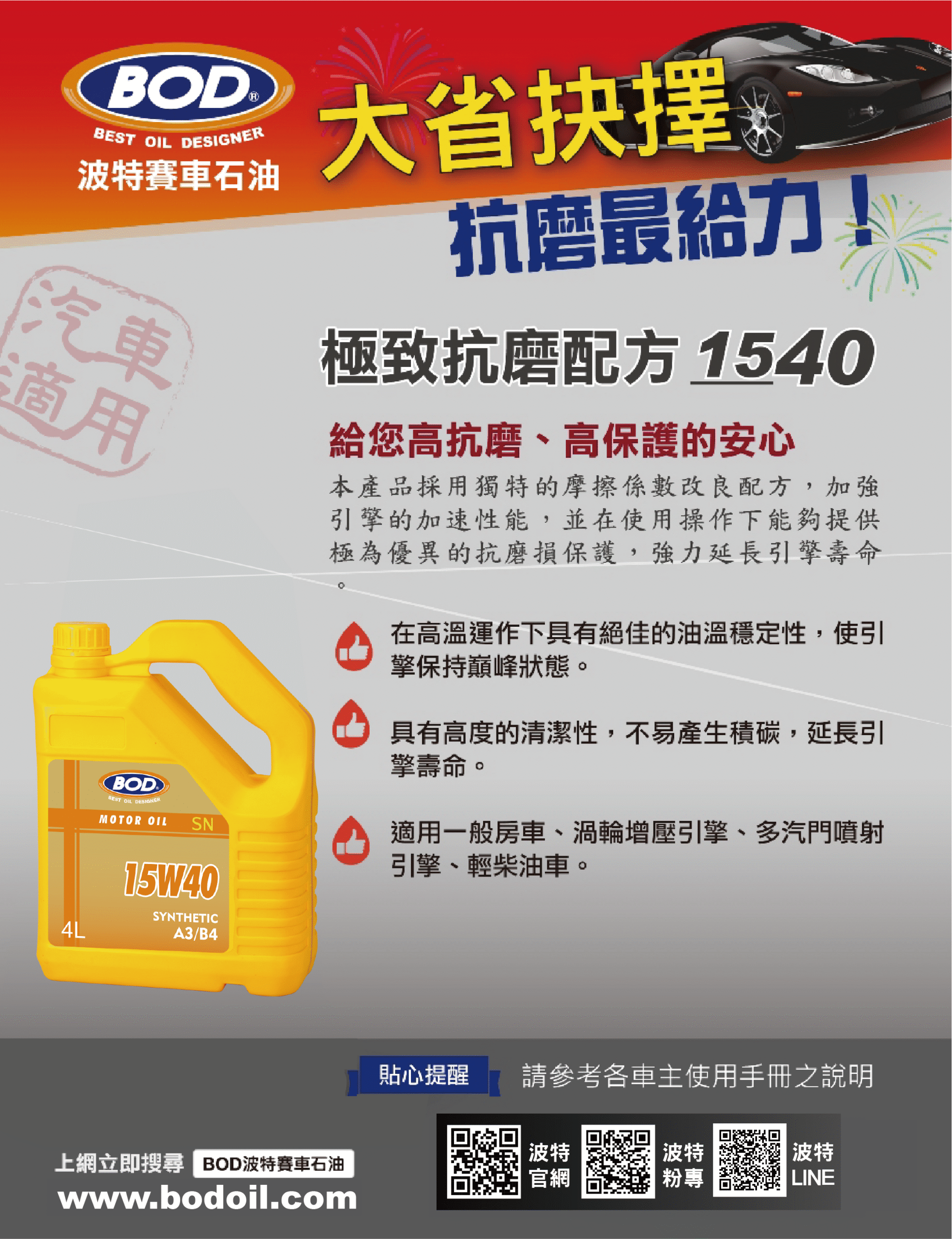 • 品牌: BOD 波特賽車石油 (Best Oil Designer)