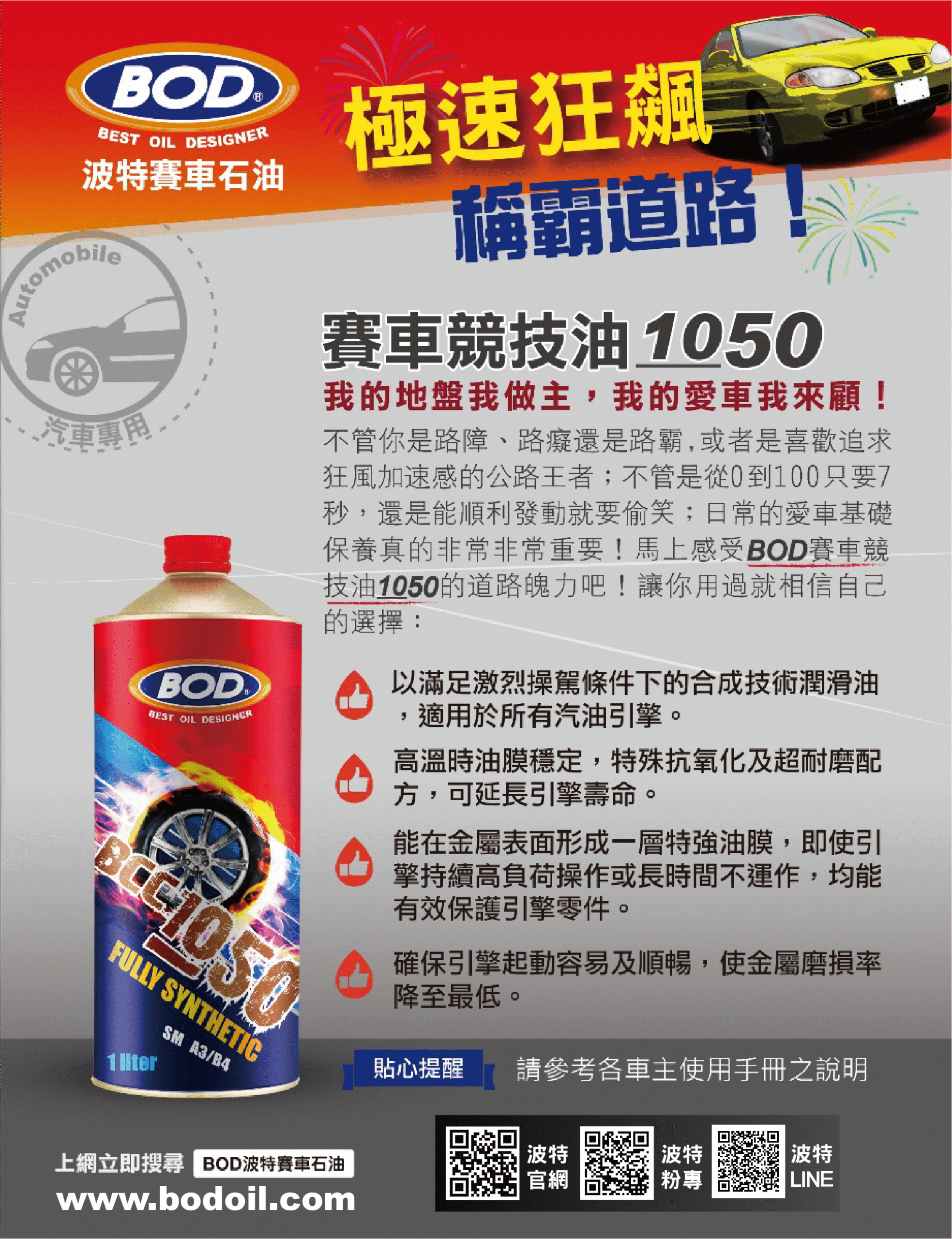 🚀 BOD #169 BCC 1050 全合成高性能機油 — 1050