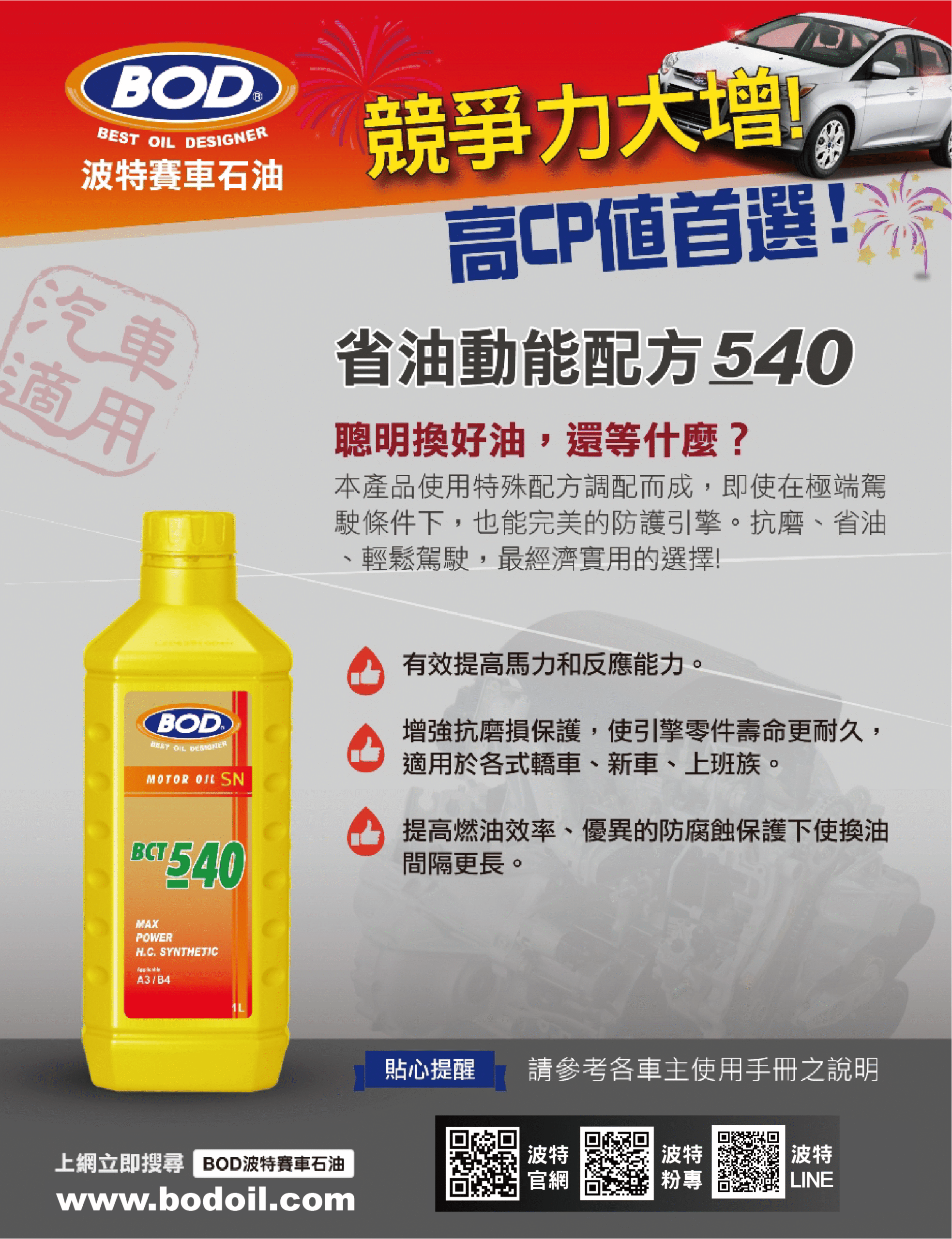 選擇 BOD BCF 540,為您的引擎提供卓越的酸性中和與高溫穩定性,延長機油效能!