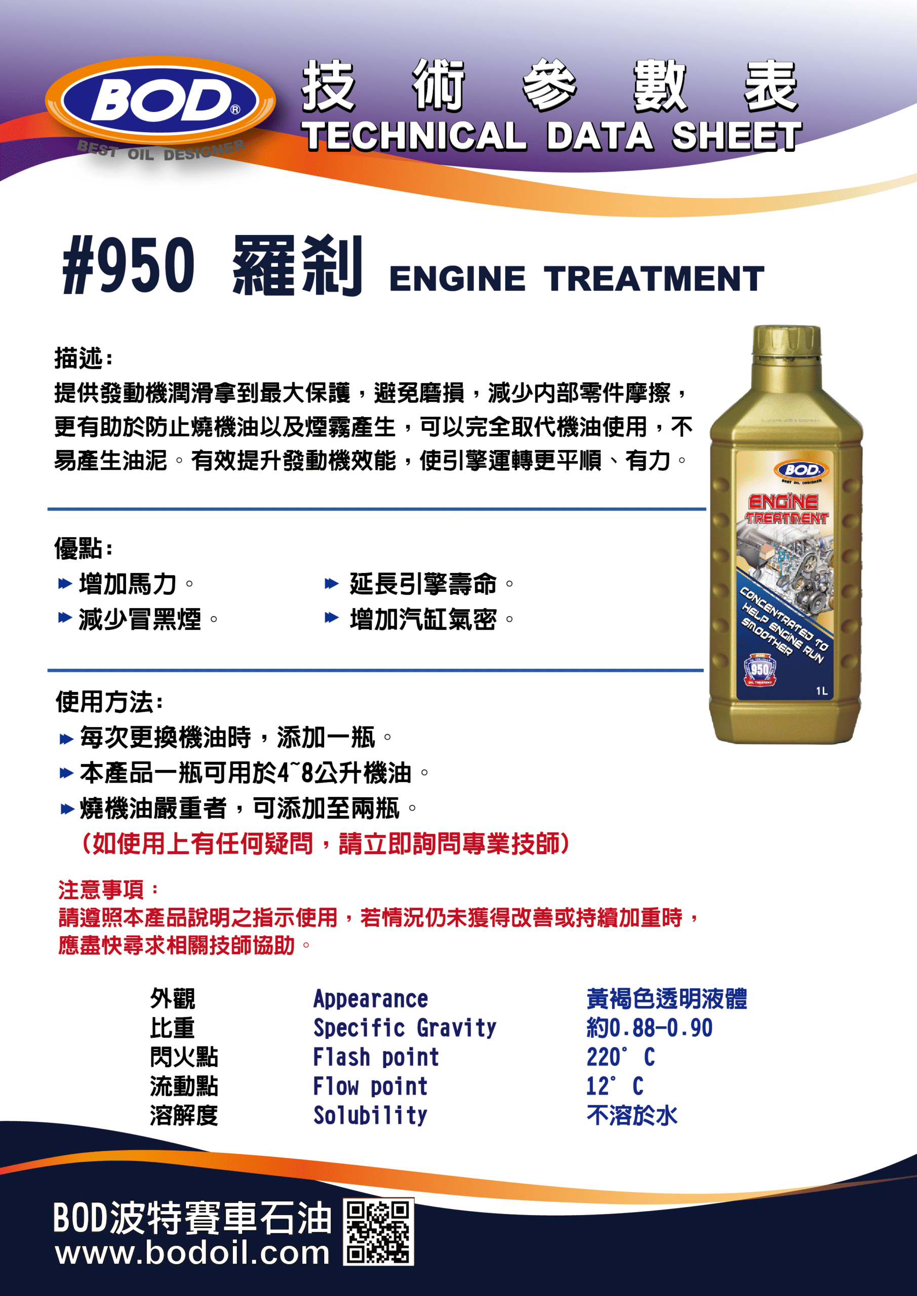💥 BOD #950 羅剎 ENGINE TREATMENT:引擎保護與效能提升的終極解決方案 💥