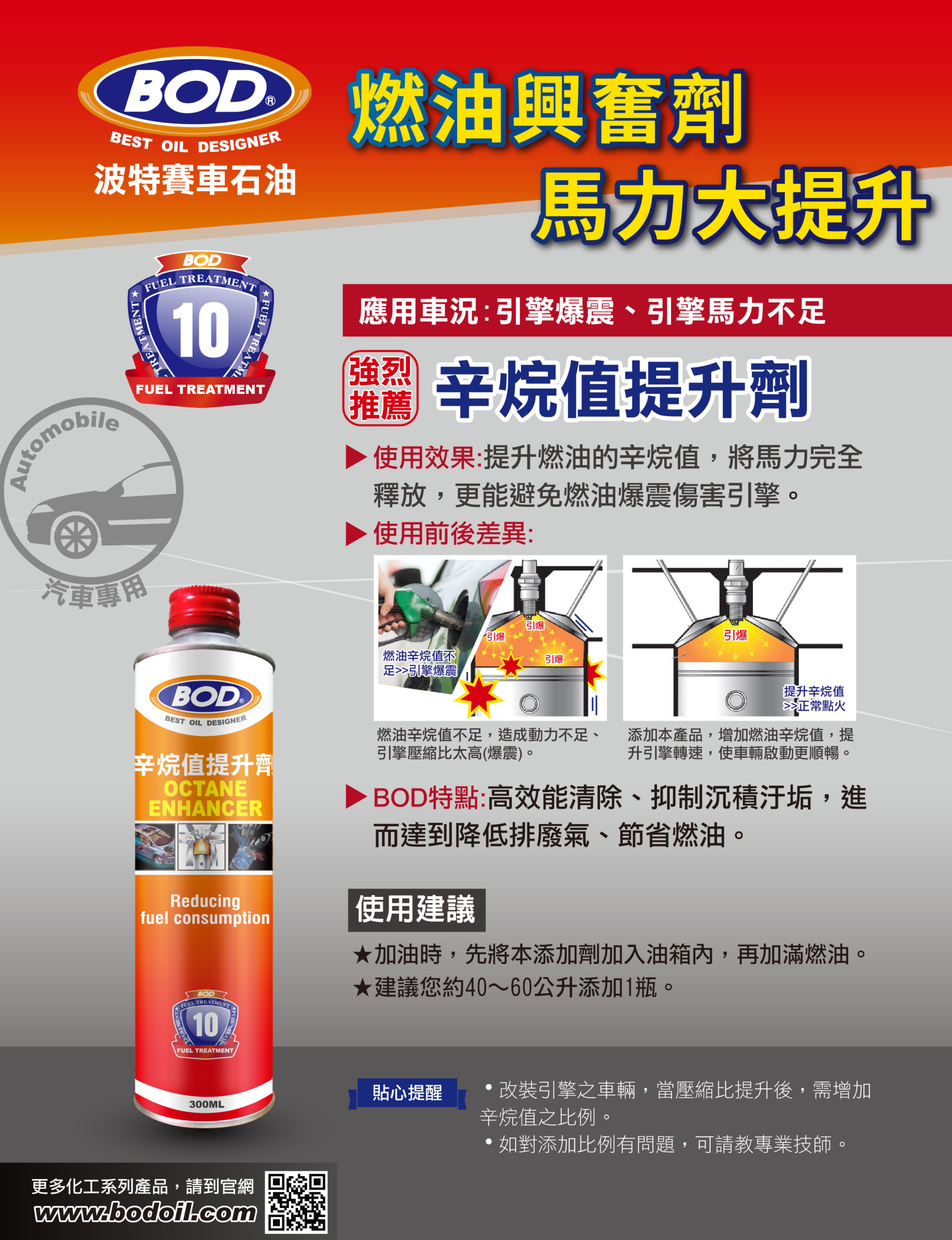 BOD 辛烷值提升劑 是解決燃油品質不穩、釋放引擎潛力的最佳方案。
